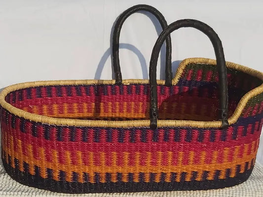 Embrace the beautiful journey of welcoming your precious little one with our exceptional Traditional Moses Basket collection! Each basket is lovingly handwoven by skilled artisans from Ghana's renowned Bolga region, using time honoured techniques and natural elephant grass and straw materials.
